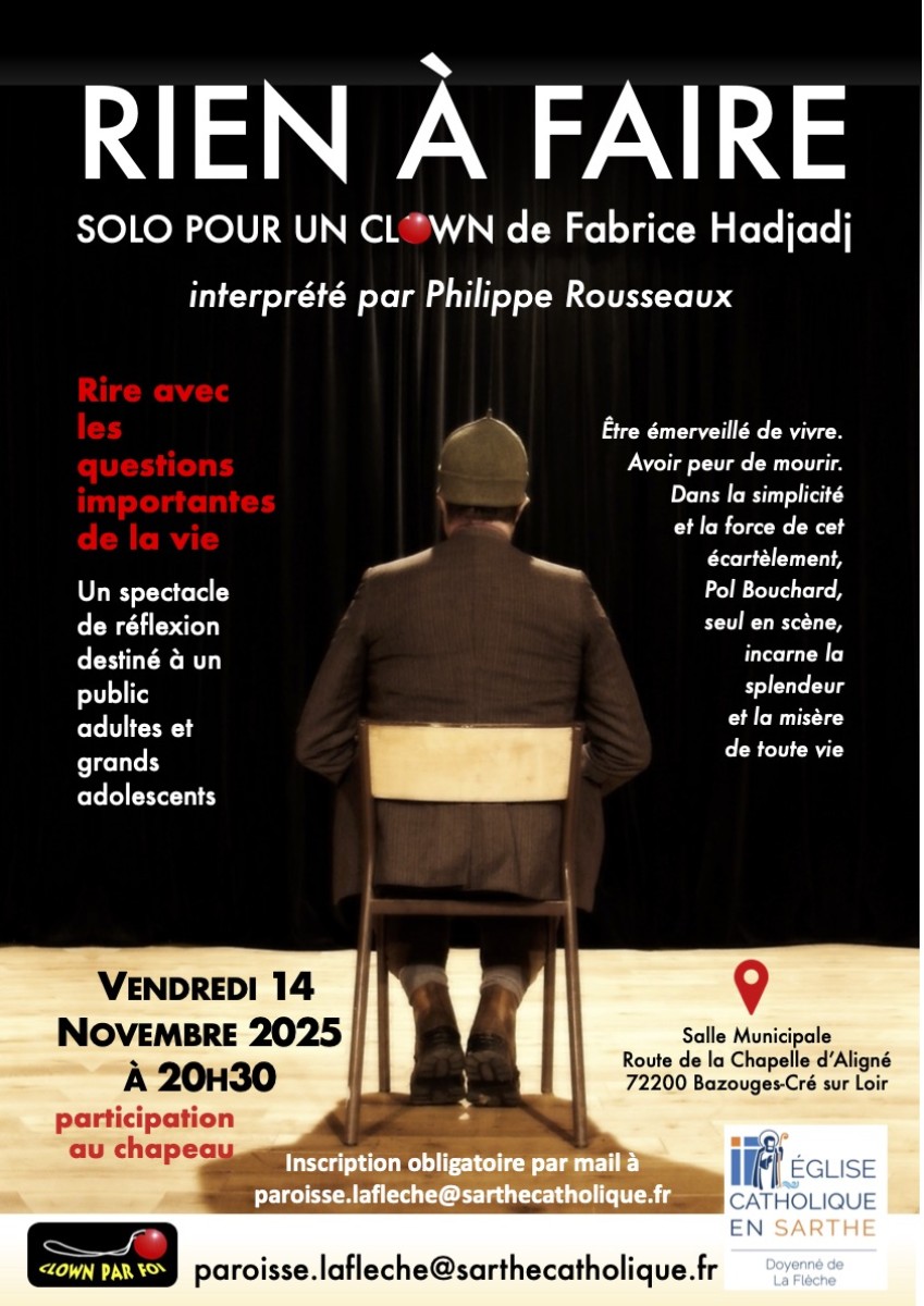 " RIEN A FAIRE, solo pour un clown " de Fabrice Hadjadj à la salle municipale de Bazouges-sur-Loir